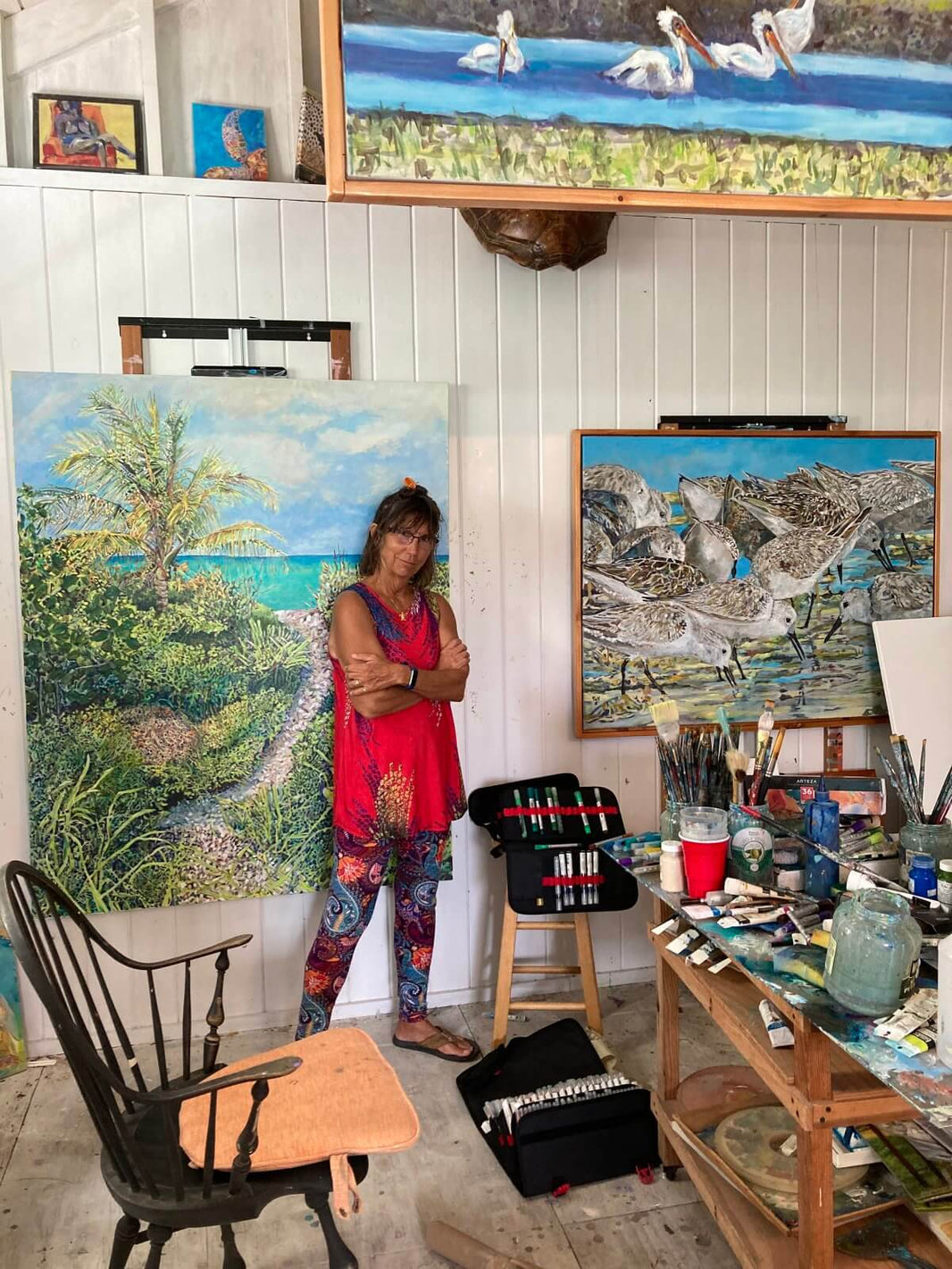 Kim Rody-Kopphas been a professional fine art painter since 2000, when she dropped out of the corporate world to paint full time. She began gaining a following in South Florida and the Bahama Islands by painting large, colorful and dramatic canvases of fish, turtles, palm trees, and all things tropical, and became known over the last decade as the “fishartista”.