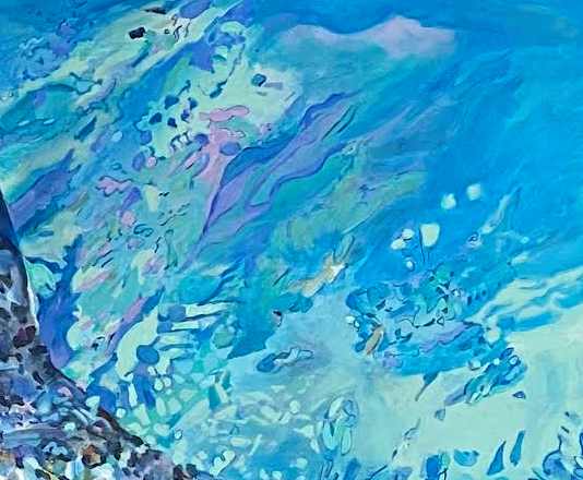Please Release Me depicts a sailfish suspended beneath the ocean’s surface, its powerful form dissolving into liquid light. A meditation on entanglement and impermanence, the piece captures the blurred threshold between control and surrender. Influenced by both marine life and metaphysical inquiry, the painting merges realism with abstraction, evoking the quantum instability of existence. Brushstrokes fracture reality; the sail unravels into waveforms—form giving way to vibration, presence dissolving into possibility.