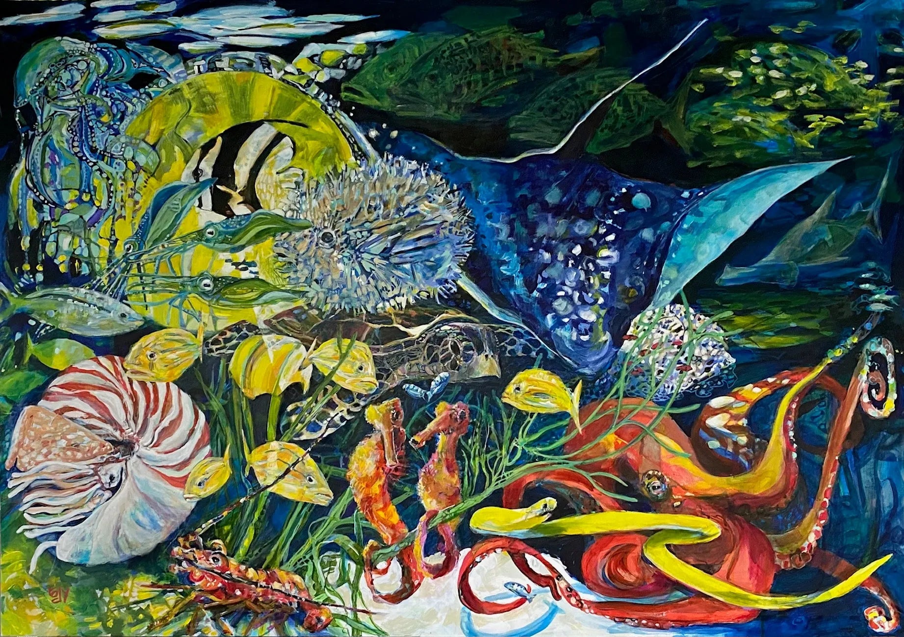 Kim Rody-Kopphas been a professional fine art painter since 2000, when she dropped out of the corporate world to paint full time. She began gaining a following in South Florida and the Bahama Islands by painting large, colorful and dramatic canvases of fish, turtles, palm trees, and all things tropical, and became known over the last decade as the “fishartista”.
